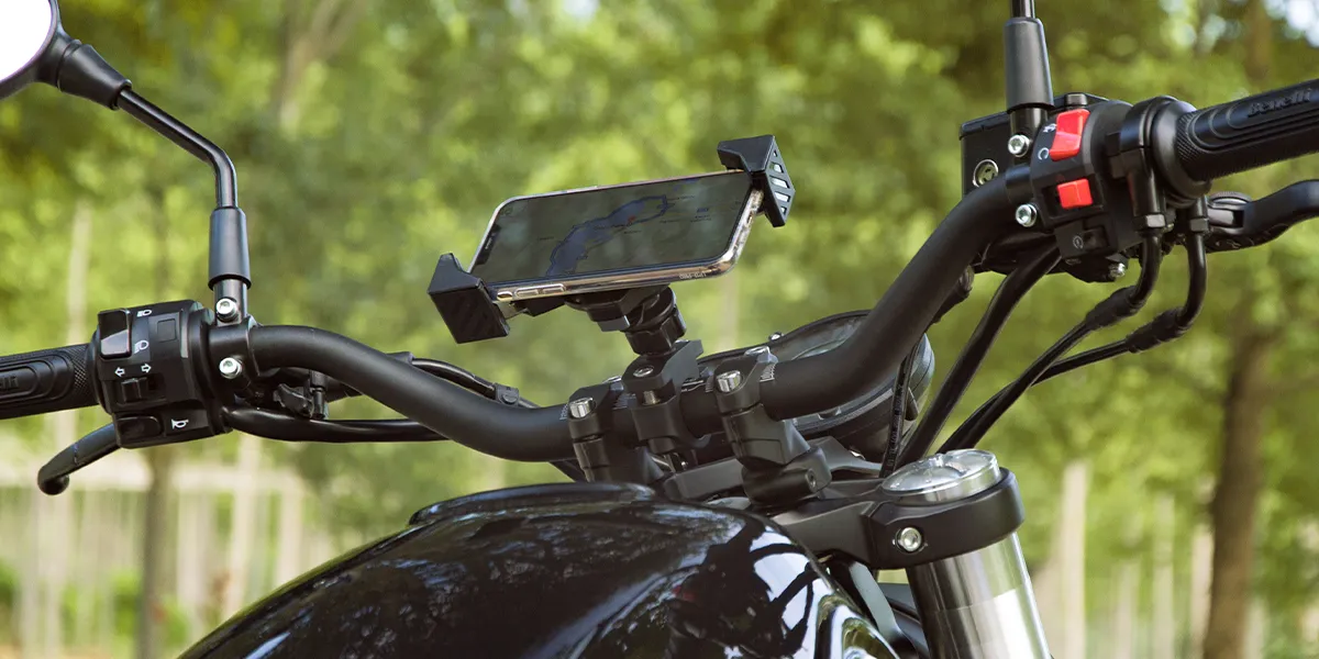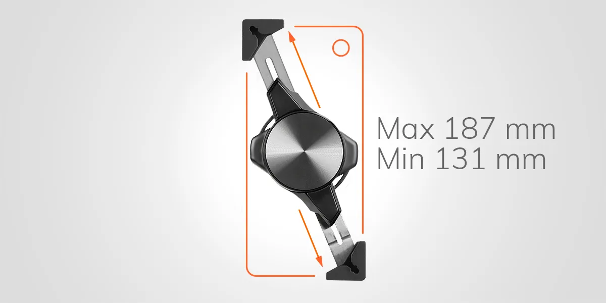 Il porta cellulare moto Chroma è universale per tutti i dispositivi da 131 mm a 187 mm di altezza e fino a 85 mm di larghezza. I due bracci di alloggio del telefono sono realizzati in acciaio inox che rendono resistente e stabile il porta cellulare. Il dispositivo viene bloccato da un meccanismo di sicurezza attivato da due alette posteriori che ne impediscono l’estrazione accidentale.