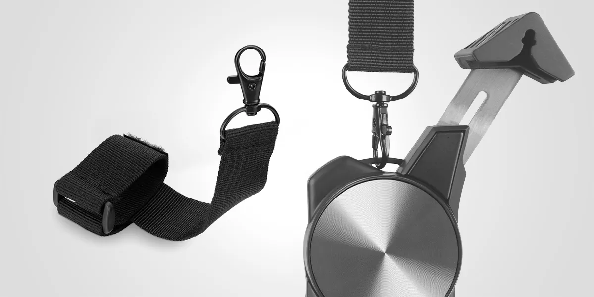Incluso nella confezione una fascia di sicurezza che tramite un velcro viene fissata al manubrio e con un piccolo moschettone alla custodia impedisce di perdere il dispositivo e il supporto in caso di imprevisti.